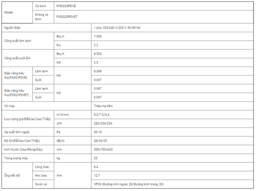 Dàn lạnh VRV Daikin giấu trần nối ống gió dạng mỏng 2 chiều FXDQ20PDVE (Loại tiêu chuẩn có bơm)