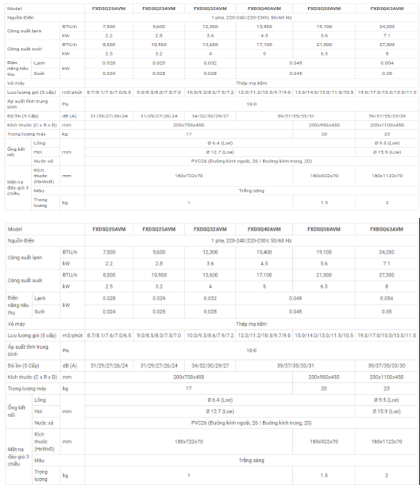 Dàn Lạnh VRV Giấu Trần Nối Ống Gió Dạng Mỏng Daiki FXDSQ/AVM (Luồng Gió 3 Chiều Có Cảm Biến)